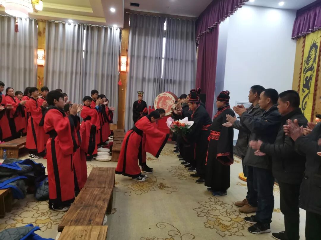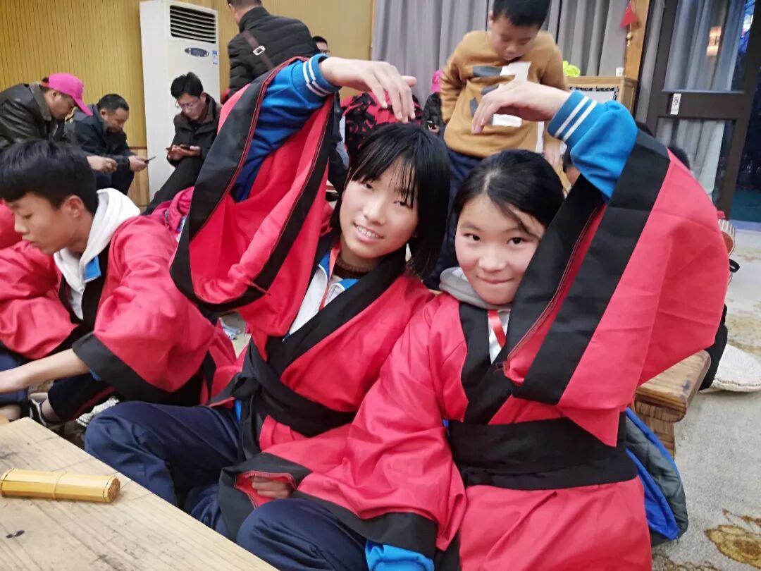 午餐后,同学们来到曲阜研学基地,换汉服,体验了大型古礼——拜师礼,了解到什么是“六礼束脩”,懂得如何感恩师长,尊师重道。