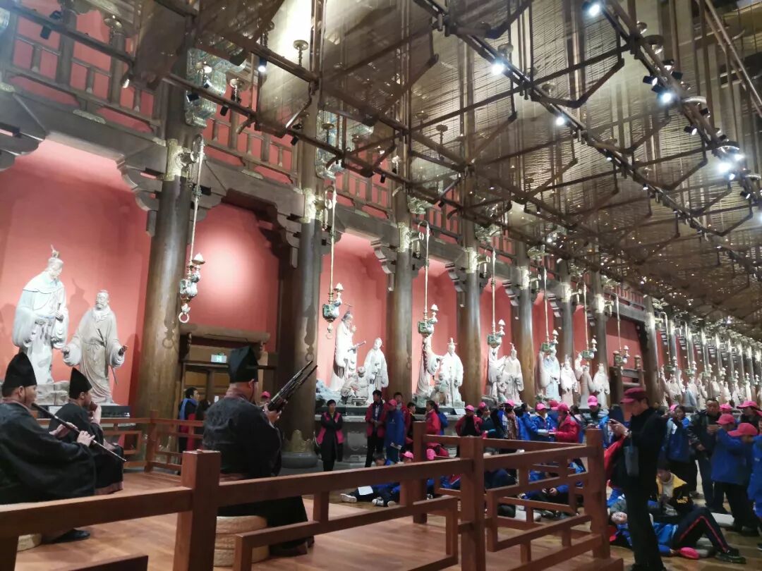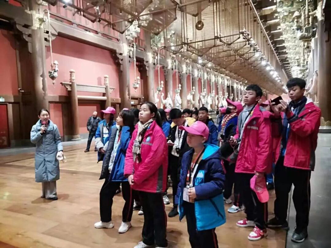午餐后,来到尼山圣境大学堂。仰望着台阶尽头高悬的匾额“高山仰止”拾阶而上,转入七十二贤廊,真人等高的人物雕像,每一尊都讲述着一个典故,同学们听的津津有味,若有所思。