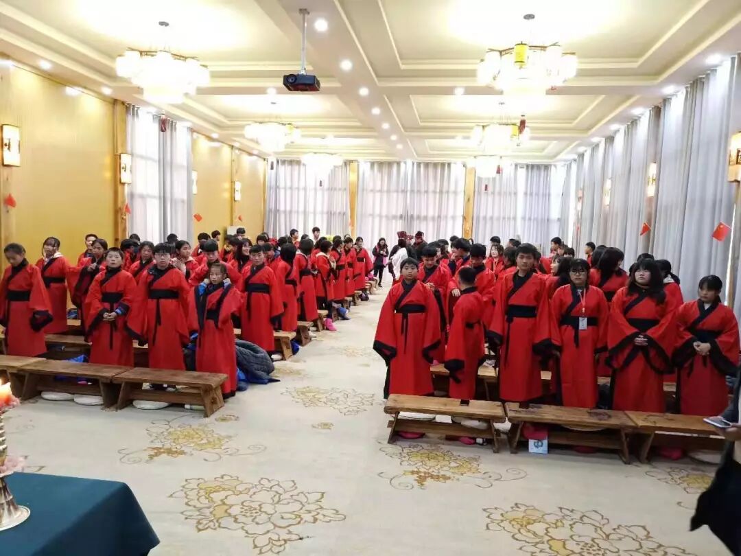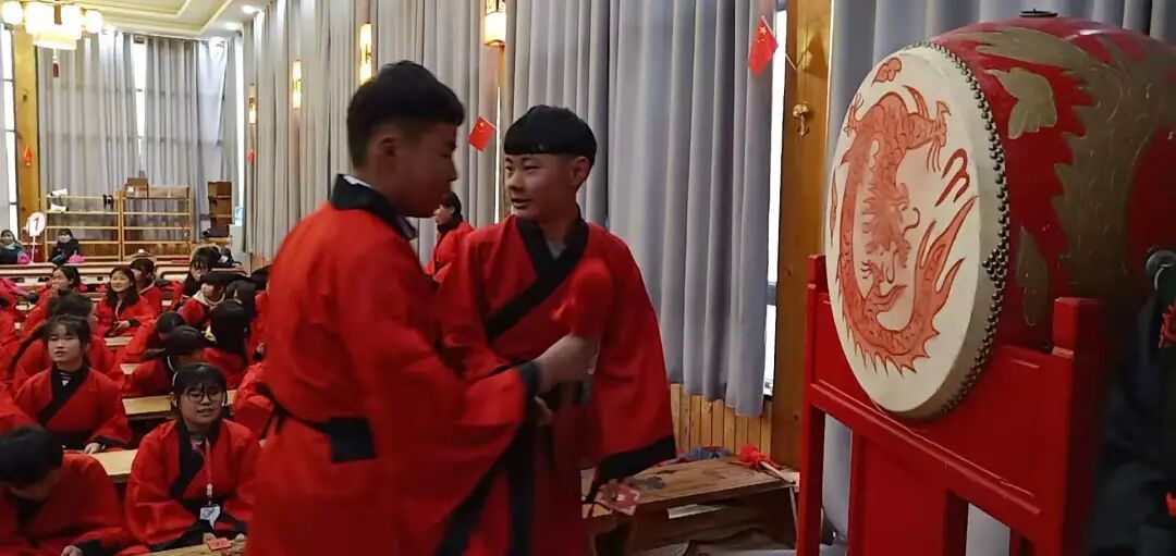之后,同学们过击鼓明志和挂福牌的方式,表达自己对未来的美好期待和向往。